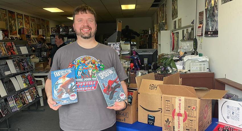 I didn’t know exactly how I was going to help until a Vol State student, Anthony Rece, stopped by my office a few days later to chat. Anthony told me that he had recently taken over as a social media content creator for Mountain Top Comics & Collectables and that sparked the idea that eventually led to us collaborating on us hosting the graphic novel drive at the comic store and partnering on its promotion through Mountain Top Comics and Vol State’s social media accounts.