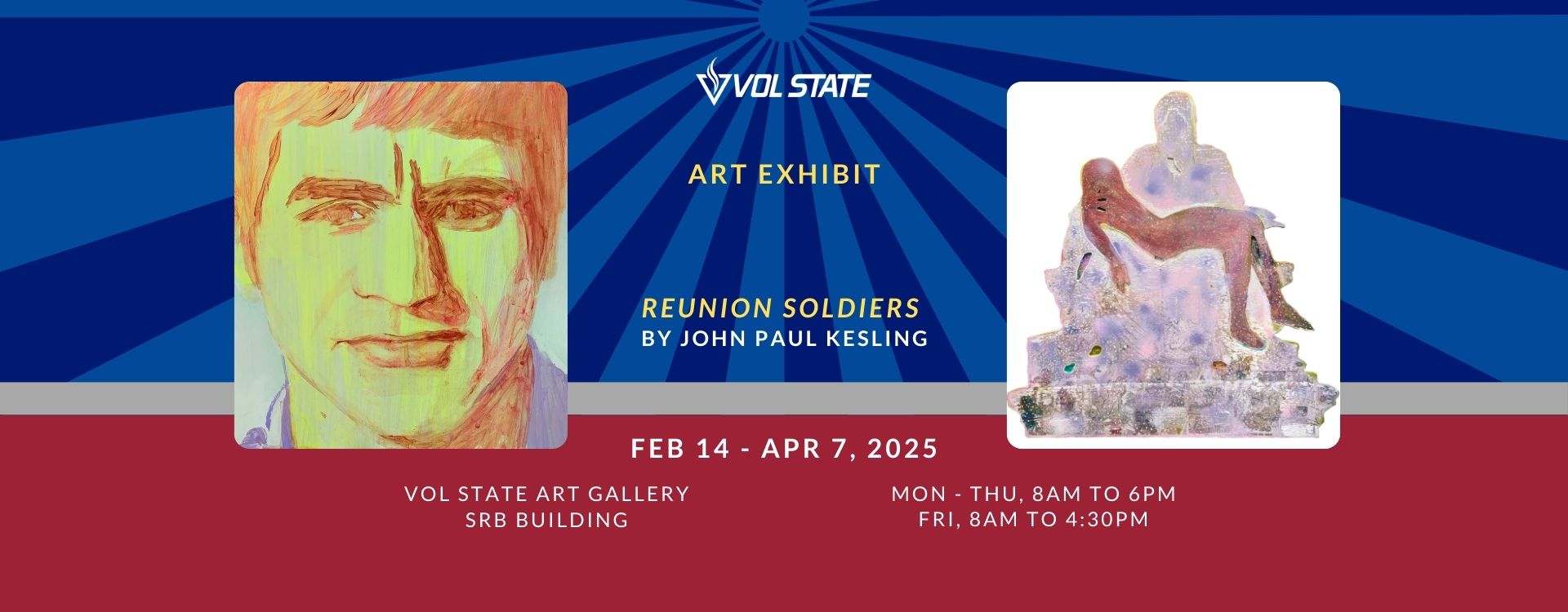 The Vol State Art Gallery features the works of visiting artists from across the country, as well as Tennessee artists, our students, and faculty. All gallery events are free and open to the public. The gallery is located on the first floor of the Steinhauer-Rogan-Black (SRB) Humanities Building on the Gallatin campus at 1480 Nashville Pike.