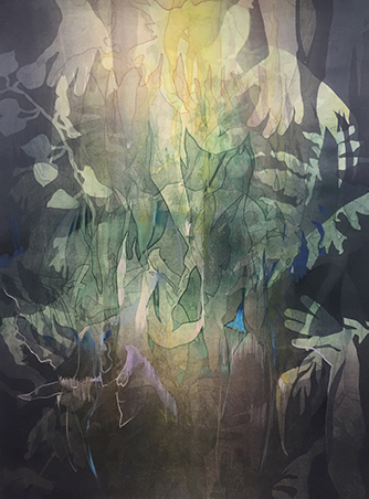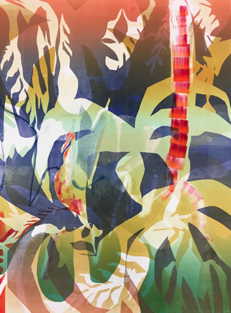 She states: “My work is driven by uncertainty. It stems from personal memories and experiences, but taps into universal themes of adolescence, beauty, power, and fear. As a Florida native, this body of work oozes with tropical fervor, though its origins are found in feelings of uneasiness and deeply embedded childhood memories. Tangled palmettos and invasive vines serve as metaphors for instances in our lives when innocence turns to fear, while color lures the viewer closer.”