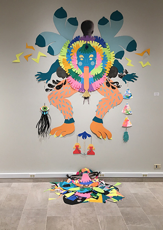 Monica Stewart is a multimedia artist working primarily with paper. She received her BFA with an emphasis on painting from Murray State University and MFA at the University of Louisville. She explores the relationships between narrative and object. She draws on imagery from fairytales to allude to dysfunctional familial relationships, female agency, as well as the magical and grotesque. Cutting, rearranging, and embellishing both traditional and nontraditional materials creates the work.