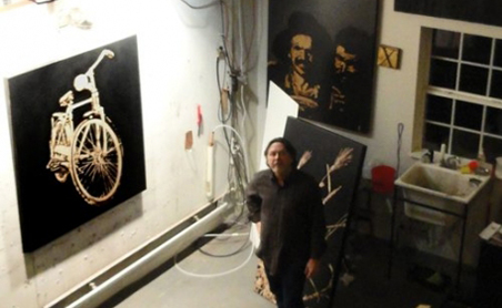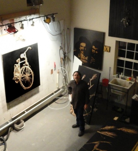 Richard Painter creates large scale images and 3 dimensional objects by a unique process of using fire resistant coating and blow torches to char wood. We are proud to say that Richard is also an alumnus of Vol State. He completed his BFA at Austin Peay State Univ. and has built a career exhibiting across the nation and internationally.