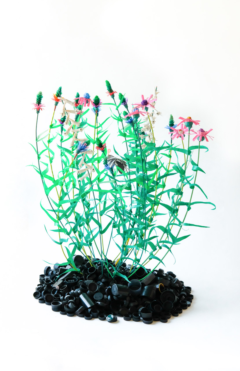 “On the one hand it is a celebration of place: I use discarded plastic to recreate this environment with a wide range of plants globally unique to the Glades, including Gattinger’s Clover, Limestone Fame Flower, Glade Larkspur and the Tennessee Purple Coneflower,” said Lockwood. “On the other hand, the show is a warning told through dystopian science fiction: my work imagines this ecosystem on a post-human Earth that has been permanently altered by the plastic garbage we relentlessly generated. Over time our waste has broken down and infused itself into every fiber of the natural world - reworking all flora and fauna into plasticized versions of their original forms.”