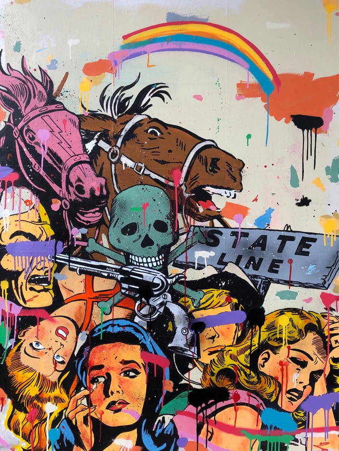 The Art Gallery at Volunteer State Community College will be showing the work of artist Matt Eddmenson of Nashville. The exhibit is open to the public. A graduate of The Art Academy of Cincinnati, Eddmenson draws from a range of influences and sources for his practice, including Cowboy Comics, Pop Art, and the work of Cy Twombly. His works are gatherings and reconfigurations of American imagery and iconography, commonly featuring cowboys, skulls, and rodeo horses. He also incorporates images from the golden age of comics and tattoo culture.
