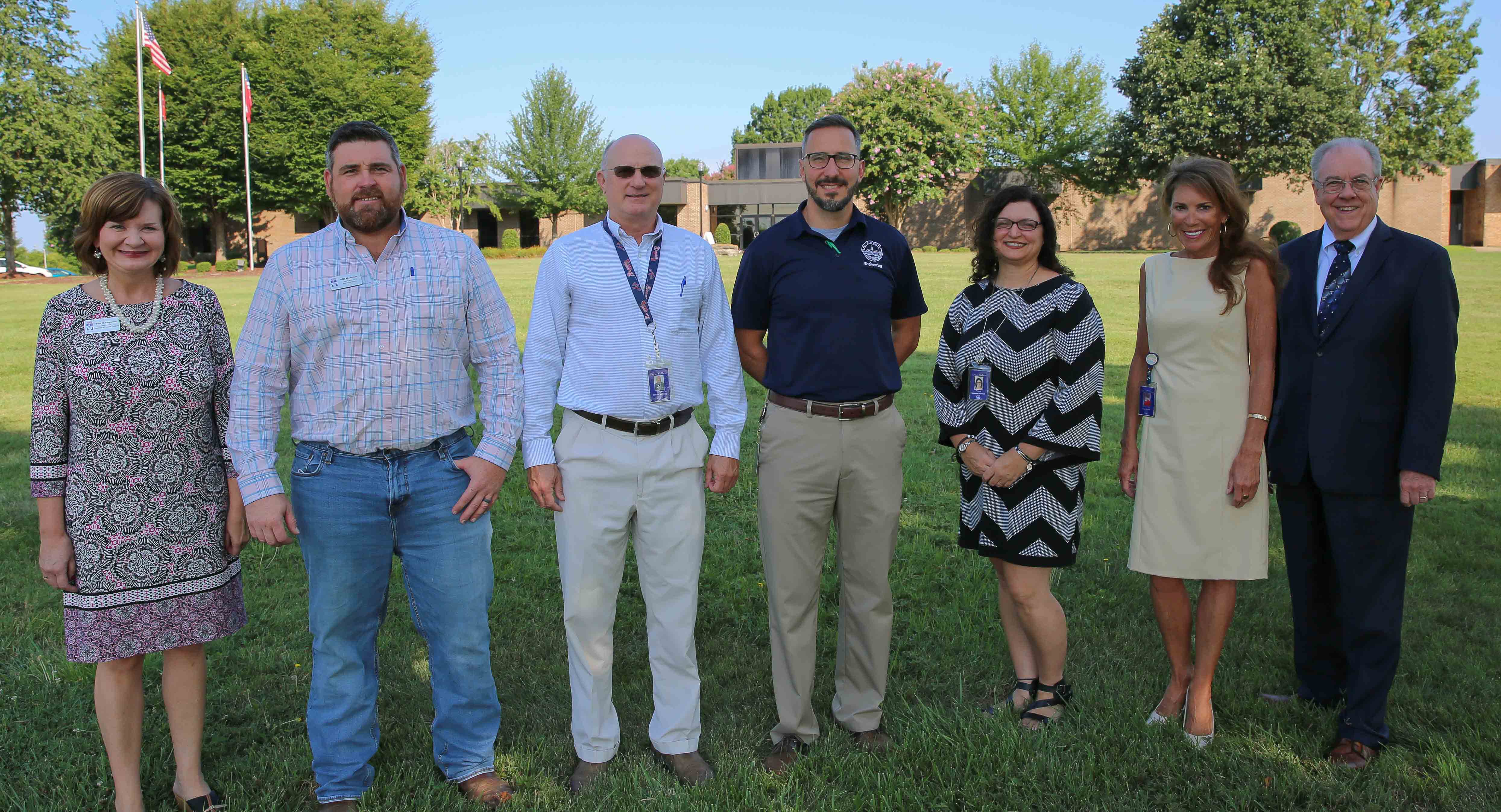 A new grant provides funding for a Gallatin greenway segment that will include part of the campus at Volunteer State Community College. The twelve foot wide path will run across the front of campus near Nashville Pike and eventually be the middle portion of a greenway from downtown Gallatin to Station Camp, where it will connect to the Sumner County greenway. The Tennessee Department of Transportation is providing $950,000 for the grant. The project is expected to take several years to complete. City of Gallatin representatives joined Vol State administrators for a picture to mark the funding announcement. Left to right: Beth Carpenter, vice president of Business and Finance; Will Newman, director of Plant Operations; Bill McCord, Gallatin city planner; Nick Tuttle, Gallatin city engineer; Suzanne Geerholt, Gallatin grant coordinator; Paige Brown, Gallatin mayor; and Jerry Faulkner, president.