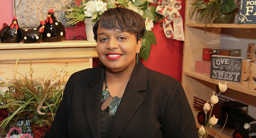 Pictured: Vol State History professor, Carole Bucy, wishes Isabella Greene well the day before her travel to Washington, D-C. They are shown in the family flower shop in Portland, Tennessee.